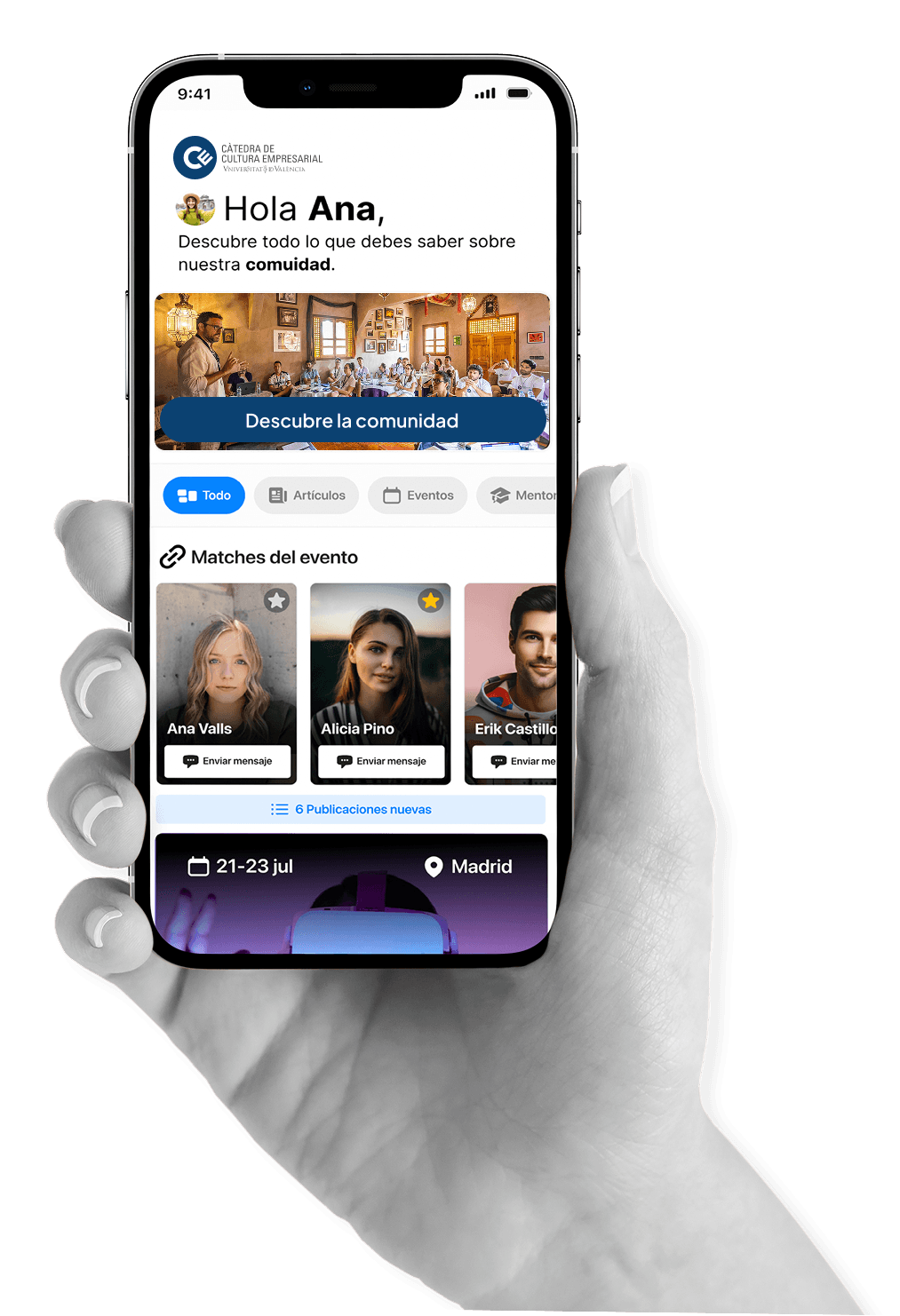 La Cátedra de Cultura Empresarial necesitaba reconectar y mantener activa a su comunidad Alumni, que hasta ese momento se encontraba dispersa en distintos canales y cada vez más desvinculada con el paso del tiempo.
