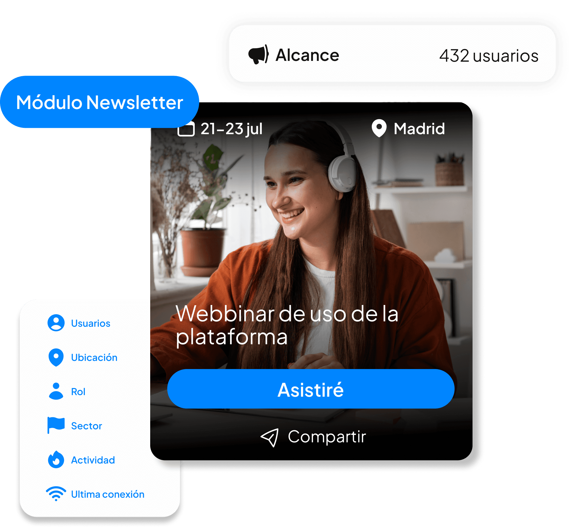 La comunicación con el antiguo alumnado era irregular, poco efectiva y difícil de escalar. No existía una base de datos unificada ni una plataforma común desde la que compartir información, eventos o contenidos de forma ordenada.
