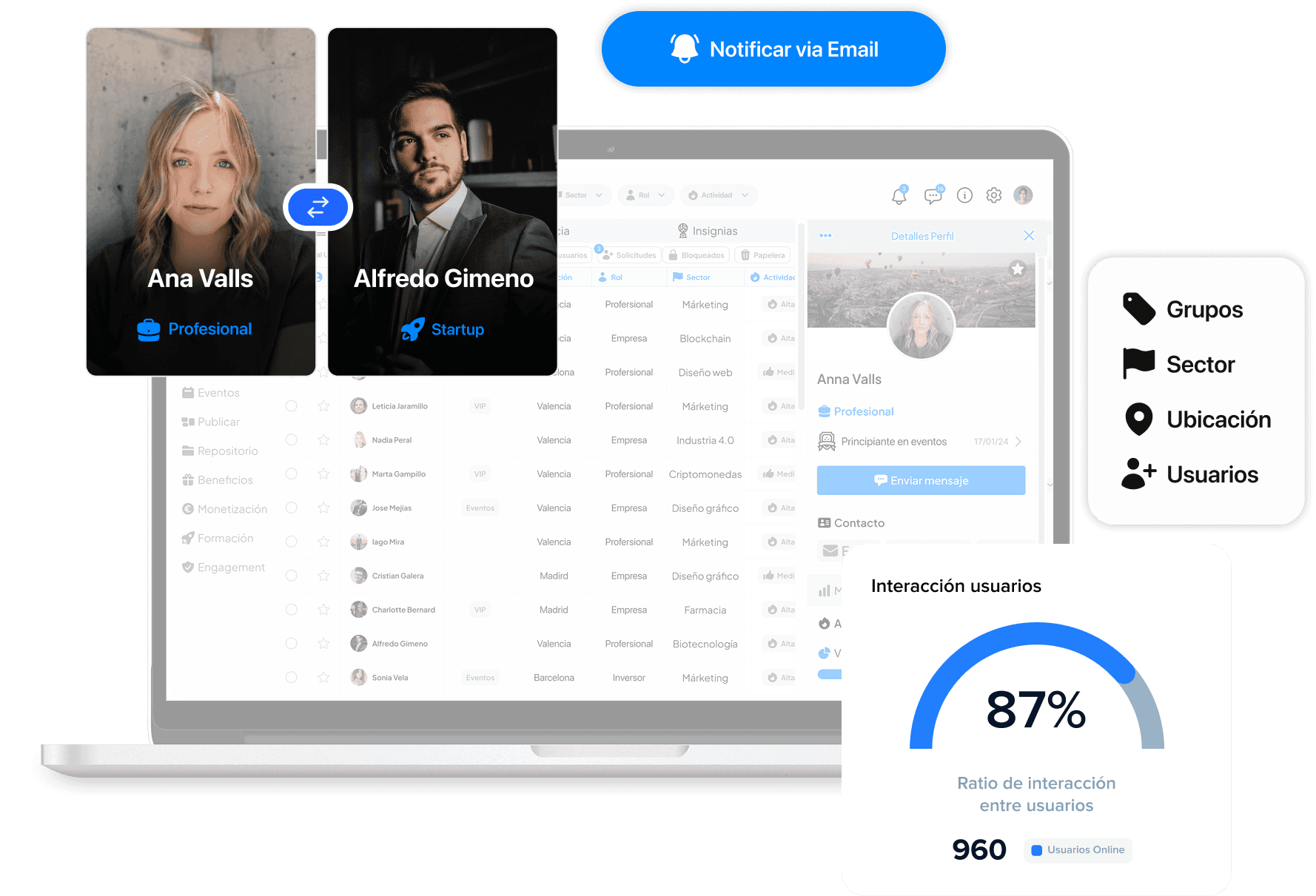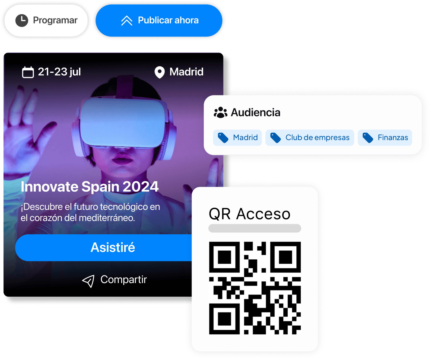 Eventos, comunicaciones, pagos, contenidos y base de datos, todo integrado en Feending desde el primer día.
