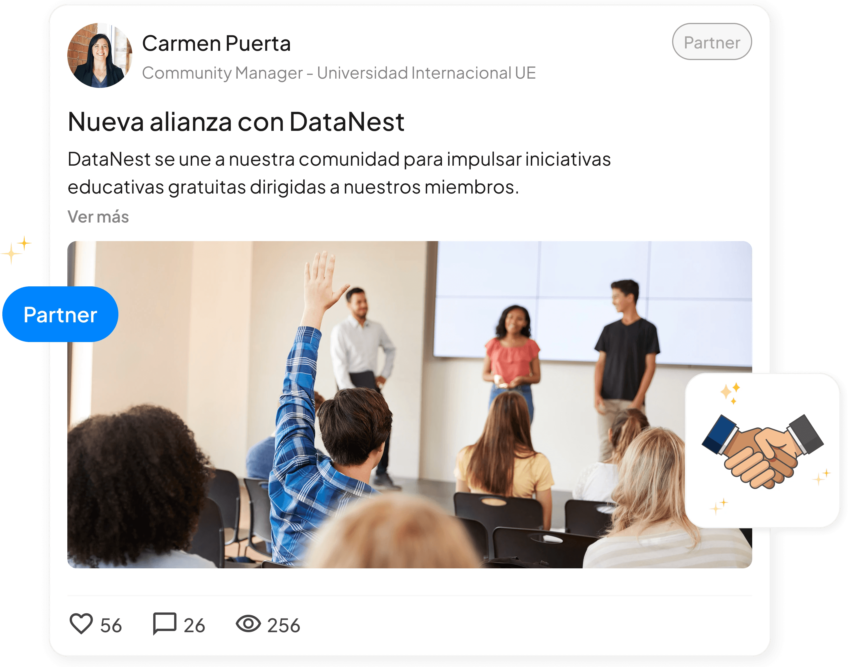 Publica contenidos, novedades y anuncios directamente en el feed para mantener a los miembros informados y activos en un espacio propio.