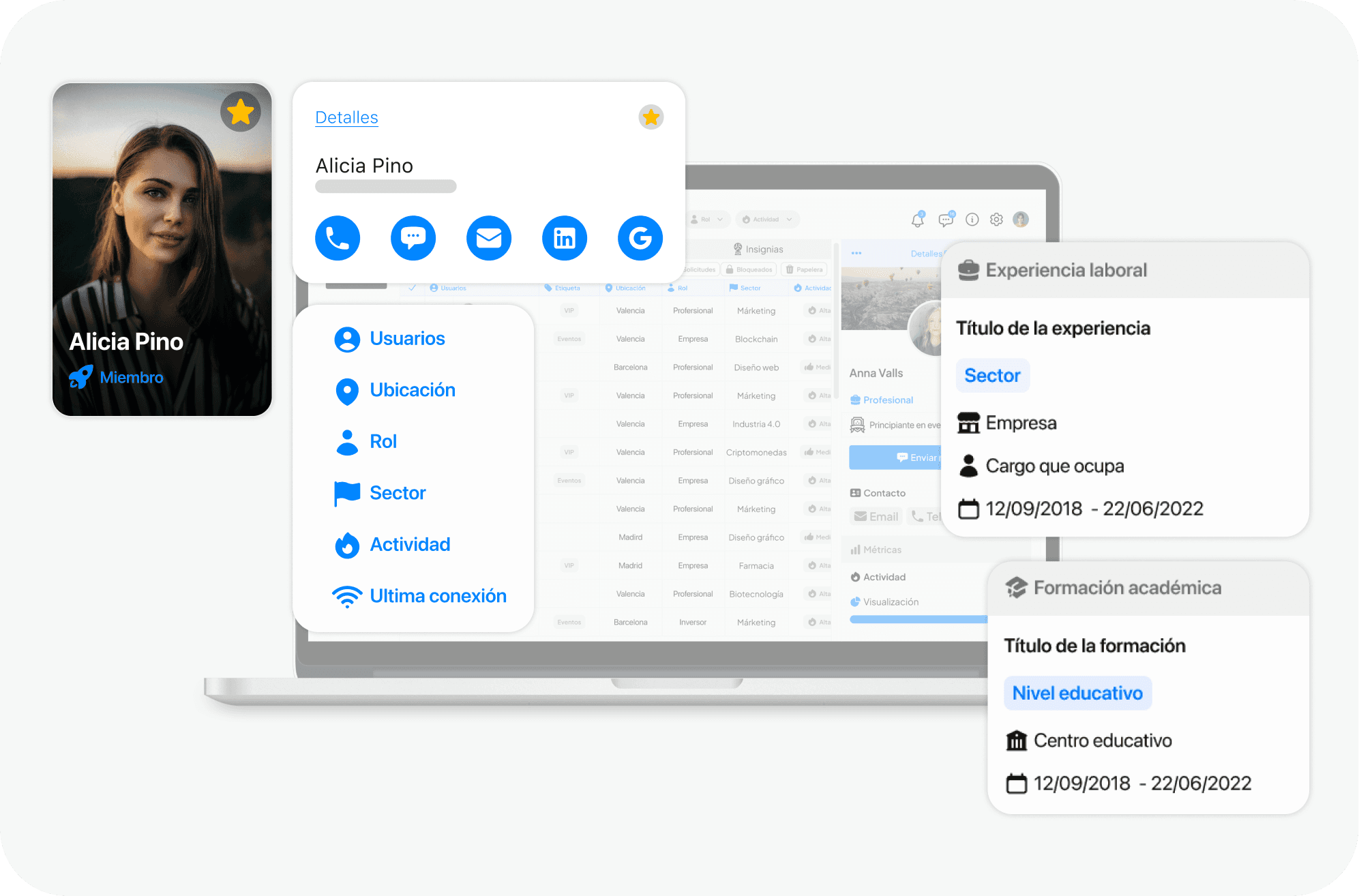 Nuestra inteligencia artificial automatiza tareas para los gestores, personaliza la experiencia de cada usuario y crea conexiones inteligentes, haciendo que las comunidades sean más conectadas y comprometidas.