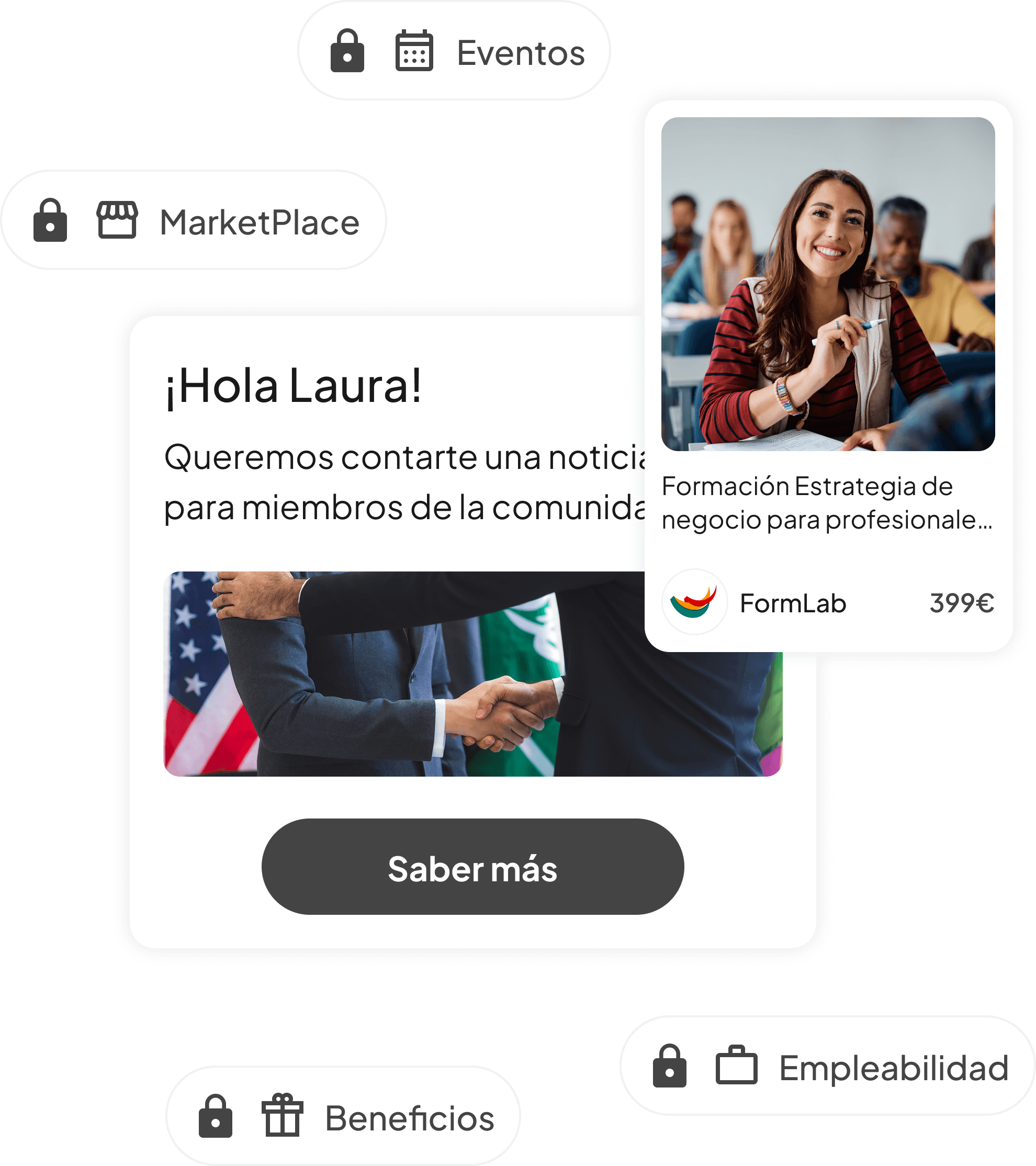Ofrece ventajas, descuentos y acuerdos especiales con empresas y partners que aportan valor directo a tus miembros.