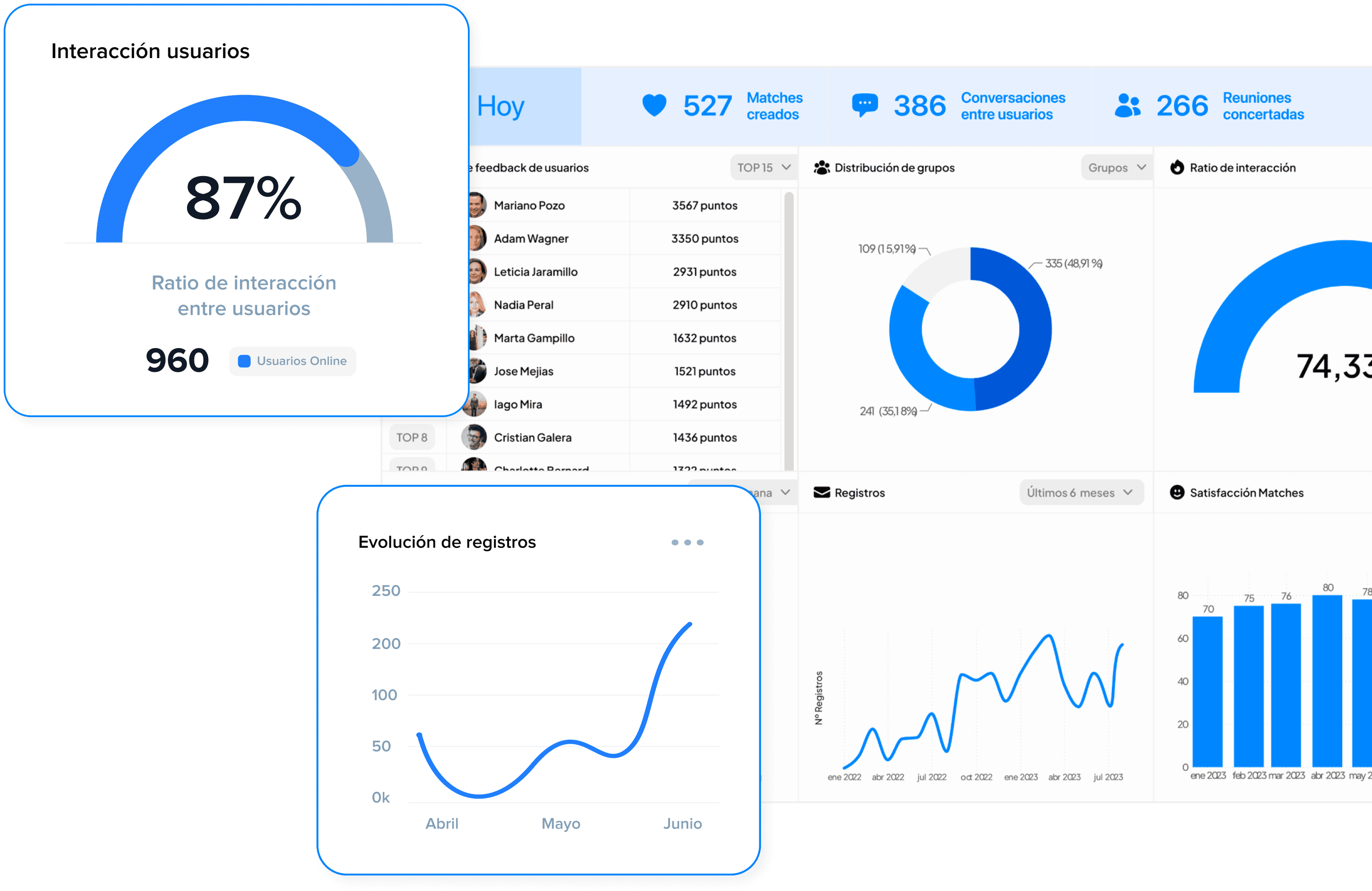 Nuestra inteligencia artificial automatiza tareas para los gestores, personaliza la experiencia de cada usuario y crea conexiones inteligentes, haciendo que las comunidades sean más conectadas y comprometidas.